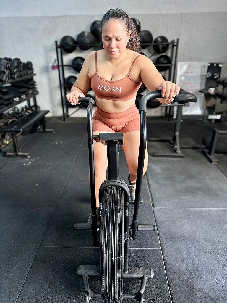 Short possui modelagem anatômica. Traz cintura alta e recortes nas laterais, criando um visual moderno e que valoriza a silhueta. O conjunto marrom é versátil e poderoso, ideal para compor produções esportivas e casuais com atitude.